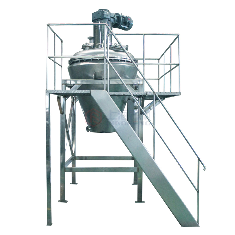 DMIX真空攪拌混合干燥機(jī)工作過(guò)程為批次操作,濕物料進(jìn)入料倉(cāng)后,利用夾套、攪拌加熱進(jìn)行干燥。通過(guò)選擇合適的單錐真空干燥機(jī)(工作容積)可以達(dá)到需求的處理量范圍,采用上驅(qū)動(dòng)式結(jié)構(gòu)的攪拌器與攪拌螺桿可分段拆裝,由于安裝空間充裕,適宜于GMP車(chē)間使用和進(jìn)行檢修維護(hù),同時(shí)單錐螺旋真空干燥機(jī)具有的高效干燥混合能力是雙錐真空干燥機(jī)的3-4倍, 物料裝填率在10%-99%可正常工作,懸臂螺桿攪拌可以達(dá)到較高的混合精度,在大批物料中添加很少量物料這樣的苛刻條件下也可以在干燥機(jī)內(nèi)混合均勻,由與其與眾不同的溫和攪拌的特性,即使對(duì)干燥處理敏感的產(chǎn)品,也不會(huì)遭損壞,所需的驅(qū)動(dòng)功率卻相對(duì)很低。本干燥機(jī)的高真空設(shè)計(jì)對(duì)干燥溫度敏感的產(chǎn)品來(lái)說(shuō)其優(yōu)勢(shì)十分明顯,并具有良好的熱傳導(dǎo)能力、和快速干燥,同時(shí)、又兼具低耗能的特點(diǎn)。與干燥機(jī)直接相連的過(guò)濾器能夠?qū)m粒保留在加工區(qū)域內(nèi),本機(jī)采用充氣密封半球閥,卸料干凈、便捷,出色的真空、耐壓密封性能, 無(wú)死角、易清潔設(shè)計(jì),性能穩(wěn)定、使用壽命長(zhǎng),從而保證您能夠無(wú)損失地繼續(xù)加工產(chǎn)品。這樣一種多用途干燥/混合設(shè)備是您解決生產(chǎn)需求的理想裝備。